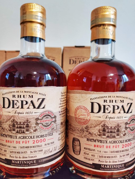 Aussitôt dit aussitôt fait (ou presque), nous voilà avec une première vague de 3 sorties Depaz, toutes sous la mention « brut de fût ». Bon toutes aussi sous la mention « Fût unique », ce qui fait que le millésime 2000 est en fait dédoublé en fût 602 et 603. Résultat, 4 références et une question inévitable: est-ce que c’est bon?