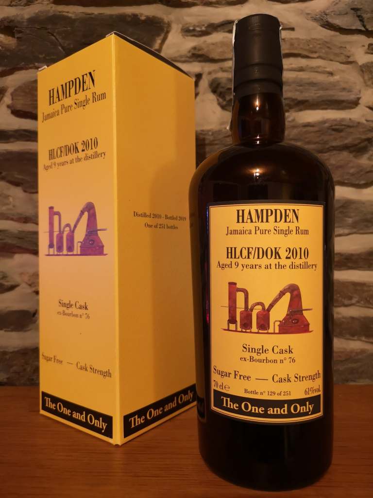 Toujours est-il que la bouteille est toujours issue d’un seul fût mais qui a contenu un assemblage de deux « marks » Hampden. D’un côte ni plus ni moins que le plus chargé des marks: DOK. Celui-ci correspondant à la fourchette 1500-1600 g/hlpa, 1600 constituant le plafond légal jamaïcain. De l’autre un mark plus « léger » mais tout de même pas mal chargé puisque HLCF correspond à un taux de 500-700 g/hlpa. Pas vraiment de quoi adoucir donc la bête, le tout ayant été embouteillé après 9 ans en fût (puisque le distillat date de 2010) et au titre de 61% (brut de fût). Voilà donc qui augure d’une dégustation pour le moins mouvementée ! Je remercie d’ailleurs encore le généreux donateur du sample qui me permet de vous présenter cette note aujourd’hui 😉
