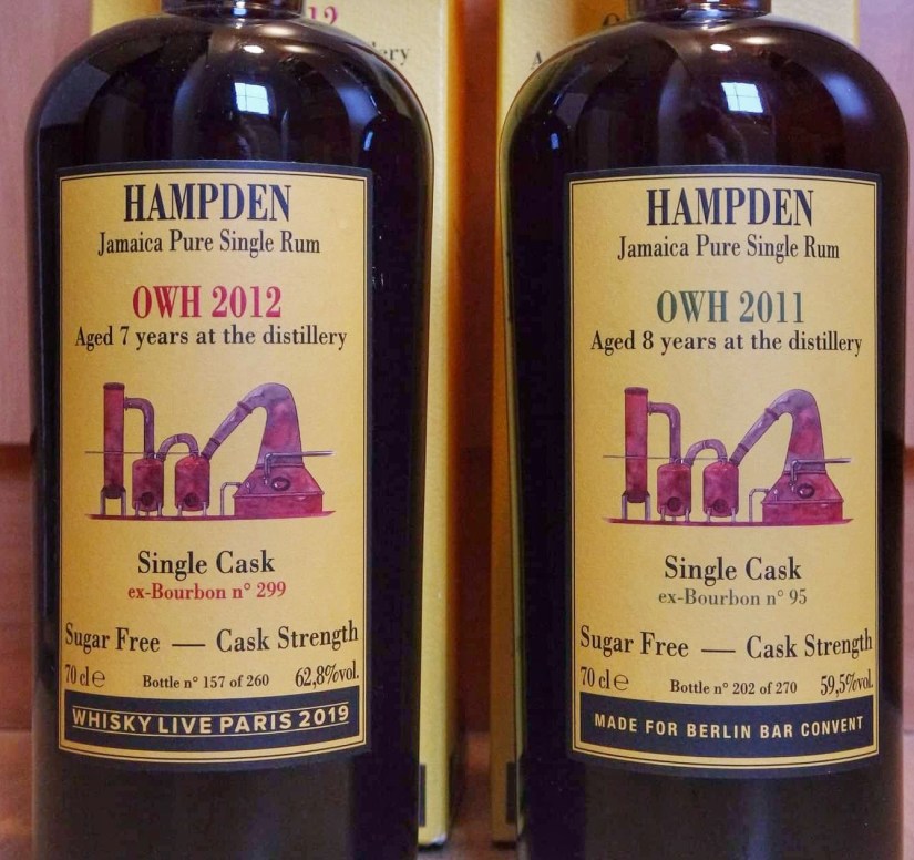 Mais avant d’y goûter (et de le comparer au 2011 tant qu’on y est), présentons un peu le rhum qui débarque après les versions spadoises, londoniennes ou singapouriennes. Nous sommes face donc à un mark OWH de chez Hampden, soit une fourchette de 40 à 80 g/hlpa. Il a vieilli 7 ans en fût unique, ex-Bourbon (8 ans pour le 2011), et a été embouteillé brut de fût à 62,8% (contre 59,5 pour le 2011). 260 exemplaires ont été vendus au prix de 135€ de mémoire (si je me trompe dites-le en commentaire). Sur le papier, peu de chances qu’il soit donc très différent du 2011. Reste à voir dans le verre !