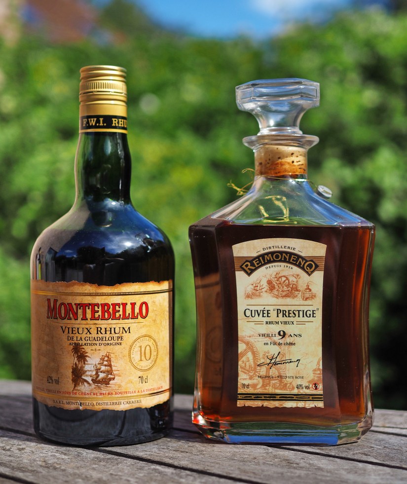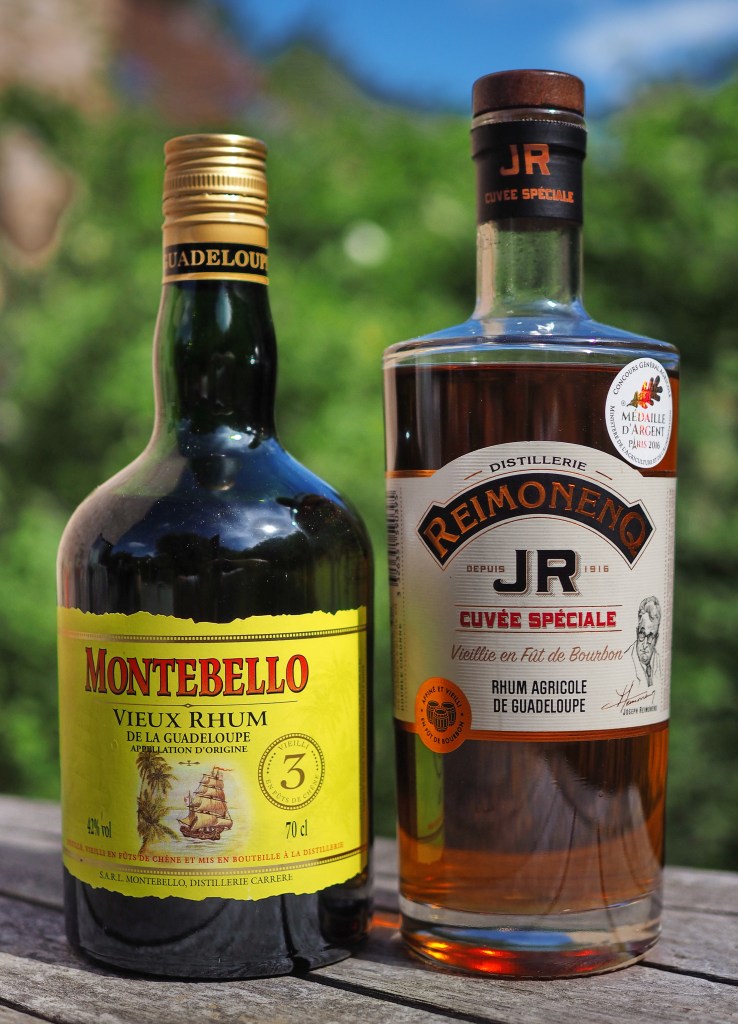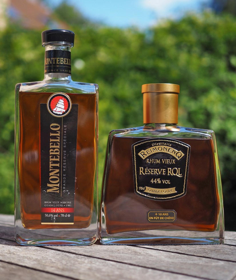Dans le coin gauche, Montebello, la distillerie de Petit-Bourg située en contre-bas du volcan, sur Basse-Terre. Celle-ci propose une gamme plutôt fournie en références avec beaucoup d’éditions millésimées. Dans le coin droit, Reimonenq, à moins d’une demi-heure de là, est située sur la partie nord de Basse-Terre et propose une gamme organoleptique très typique et originale.