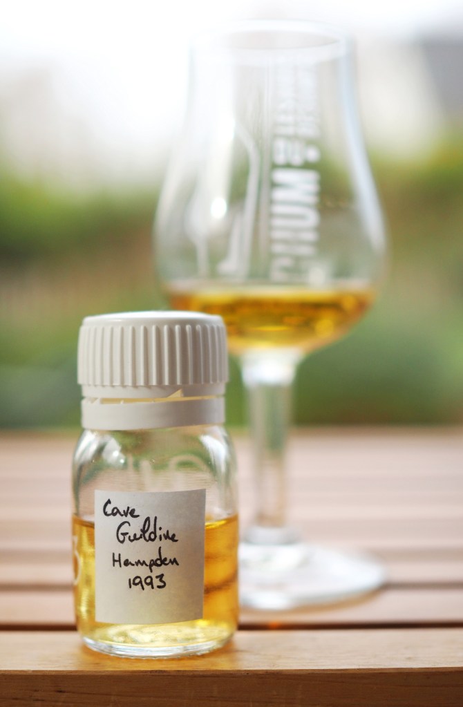 Changement d’embouteilleur, cap au nord vers la Suisse pour un Hampden sélectionné par Cave Guildive. On a déjà parlé de cet IB, notamment avec un New Yarmouth magistral. Ici nous sommes face à un Hampden, bien entendu de 1993, et vieilli 23 ans comme nous l’indique l’étiquette. Il titre à 61% mais peu d’indications sur son parcours. Comme les autres on peut supposer qu’il a vieilli intégralement sur le continent européen.