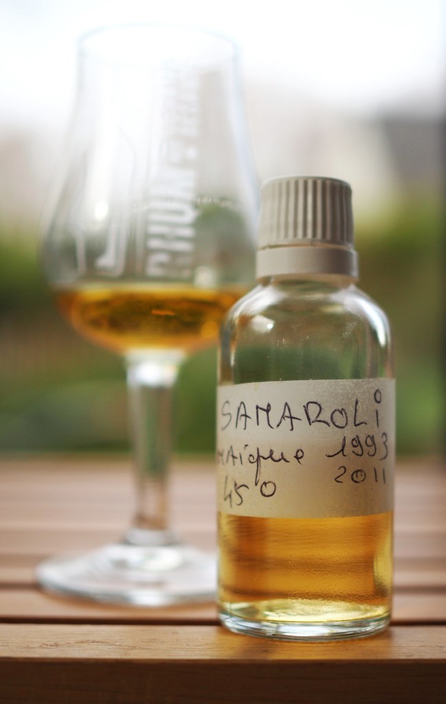 Parce qu’il faut bien commencer quelque part nous allons débuter avec le rhum réduit de la série. Mais pour le présenter je dois introduire son grand frère, le Samaroli 1993 full proof. Légende parmi les légendes, ce rhum est considéré par pas mal de monde comme LA référence absolue. Et du coup, difficile pour son petit frère, la version réduite, de se faire sa petite place au soleil. Et pourtant s’il y a eu une personne dans le monde capable de faire de magnifiques réductions, c’est bien Silvano Samaroli. Penchons-nous donc sur cet embouteillage de 2011, d’un rhum âgé de 18 ans donc (approximativement) et réduit par le maestro à 45%. Peu d’indications sur le vieillissement (Samaroli oblige) mais il a certainement passé une bonne partie de son temps sur le continent de la vieille Europe, la tradition jamaïquaine étant d’exporter la production avant vieillissement.