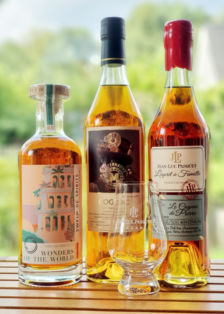 Premier arrêt, direction un nouveau venu dans le monde des embouteilleurs indépendants. Swell de Spirits, c’est son nom, est une société créée en 2021 et dont le premier produit commercialisé est précisément ce Wonders of the world #1. Derrière ce nom qui laisse bien évidemment présager de 6 autres bouteilles (7 merveilles du monde pour ceux qui ne suivent pas, l’étiquette arborant les jardins de Babylone), se cache un Cognac sélectionné dans les chais Jean-Luc Pasquet. Il s’agit d’un Lot 83 (comprenez un cognac de 1983 dont la traçabilité n’est pas complète, ce qui arrive très souvent) issu d’un domaine de Petite Champagne et élevé (en partie) par les Pasquet. Celui-ci a été embouteillé brut de fût à 51,9% et a été commercialisé aux alentours des 140€ (pour 50cl).
