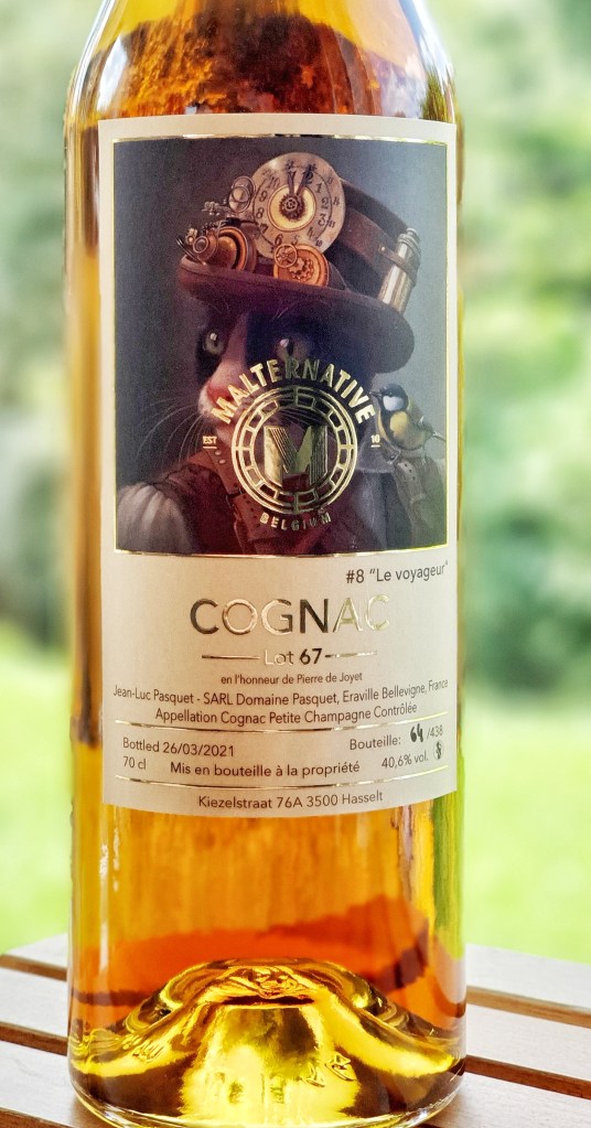 Deuxième arrêt, retour chez un embouteilleur dont nous avons déjà parlé précédemment avec trois sorties, dont une issue de ce même domaine d’ailleurs. Retour donc chez Pasquet pour Malternative avec un Lot 67 cette fois, bien plus vieux que le précédent donc puisqu’il est resté près de 54 ans en fût. Il a été mis en bouteille à 40,6% et était commercialisé au tarif de 239€ la bouteille de 70cl. Côté étiquette cette fois-ci c’est une œuvre originale de Wim Bals, en mode « Chat botté steampunk ». On aime ou on aime pas, personnellement j’aime beaucoup 😉