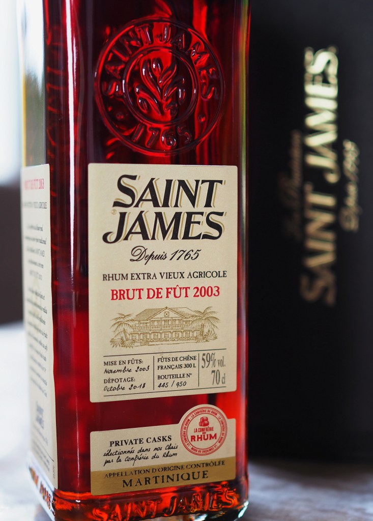 Pour le dernier rhum de la soirée nous allons dans la réputée maison Saint-James avec une sélection réalisée dans les chais de Marc Sassier. Il s’agit cette fois d’un rhum de 2003, qui a reposé pendant près de 15 longues années en fût avant d’en sortir en octobre 2018.
