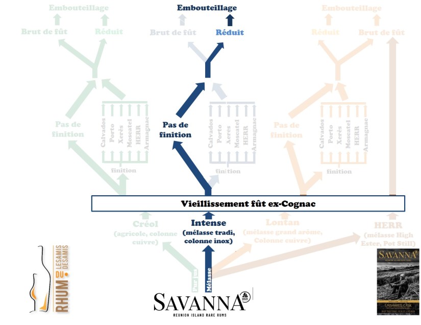 On continue avec un autre « Unshared cask », qui lui aussi vient prendre la relève d’un premier opus: celui réservé à La Maison du Whisky, le groupe français qui distribuait (jusqu’il y a peu) Savanna en France. Ce fût a une fiche technique qui devrait vous rappeler un autre « Unshared cask », celui dédié au salon de Spa qui est sorti en début d’année. En effet, il s’agit ici aussi d’un assemblage de rhum « traditionnel » (rhum de mélasse classique, avec un TNA>225g/hlpa) et de HERR, le fameux ovni de la distillerie. Aucune information sur le ratio de l’un par rapport à l’autre mais on peut sans trop de risque s’avancer sur une part plus importante de HERR dans l’assemblage que pour la bouteille spadoise. L’ensemble a vieilli 6 ans en fût ex-Cognac dans le fameux « chai humide » de la distillerie. L’embouteillage, titrant à 55,8%, a été présenté lors du Whisky Live Paris 2021 et a été commercialisé au tarif (qui a dit prohibitif?) de 135€.