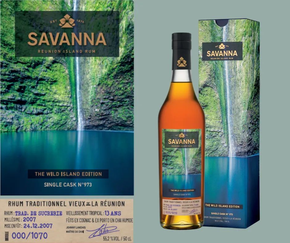 On en termine en revenant à la série Wild Island. Celle-ci a déjà connu deux sorties en 2021, qui sont venues prendre la suite de la série des 4 bouteilles 2020. Nous voici donc avec la 3ème de la série, celle-ci illustrée par une magnifique photo de la Cascade Chaudron. Rayon rhum nous sommes de nouveau face à un rhum de mélasse « traditionnel », distillé en 2007 et ayant passé 13 ans en vieillissement en fût ex-Cognac avant une finition en fût ex-Porto. Il a lui aussi séjourné dans le fameux « chai humide ». Mis en bouteille après réduction à 55,2%, il devrait plaire à pas mal de monde puisque les finitions Porto sont assez prisées parmi les amateurs de Savanna.