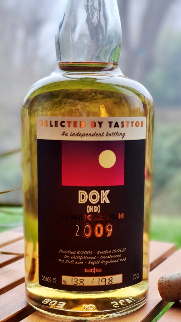 Impossible de terminer une dégustation Hampden sans tutoyer les étoiles avec ce qui sort de plus chargé de la distillerie. Ces 3 lettres DOK renvoient à Dermot Owen Kelly-Lawson, distillateur au début du 20e siècle chez Hampden. Le rhum qui nous occupe aujourd’hui a été distillé en 2009 et embouteillé en 2021. Voilà à peu près toutes les infos dont on dispose sur son vieillissement… Il a été sélectionné par Tasttoe (boutique bien connue au plat pays) et est sorti à 56,6% et en 198 exemplaires. Il a été vendu à 105€, de quoi égayer un bar avec du funk jamaïcain !