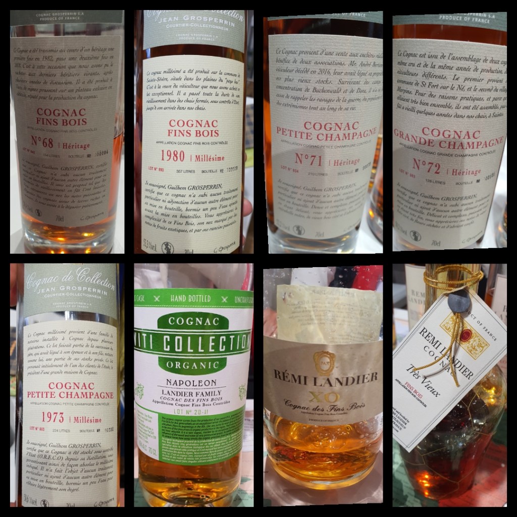 Bien décidé à faire l’intégrale, j’ai suivi l’ordre du démonstrateur et commencé par le Forgeron n°92, un Cognac typique Grande Champagne, avec toutefois une légère astringence enfin de bouche. Est venu ensuite le Château de Beaulon 1988, un joli domaine (très beau jardin à visiter d’ailleurs) en Fins Bois avec des cépages moins courants. Le millésime présenté ici ne m’a pas convaincu (je l’ai trouvé trop sec et marqué par les sous-bois), dommage car ils ont de jolis Cognacs millésimés. Le Vaudon n°75 est beaucoup plus typique des Fins Bois, avec un nez séducteur et une bouche agréable, sur le raisin mûr. Le Fillioux n°63 est fidèle à la qualité de la production du domaine: une très belle Grande Champagne, avec un très joli nez, plein de gourmandise, et une bouche follement riche et exubérante, un coup de cœur (prévisible, certes, mais quand même). J’ai terminé par les deux pépites de la gamme: en premier un Vallein Tercinier n°38, avec un nez plus porté sur le tabac et le raisin sec, et une bouche marquée par les fruits noirs et la torréfaction. Le verre vide embaume le tabac et la cannelle, on y resterait des heures. L’autre grand moment est venu du Prunier n°47, là aussi avec un nez très riche sur le boisé et les épices, quand la bouche se pare de raisin sucré et d’un magnifique boisé ciré, plein de gourmandise.