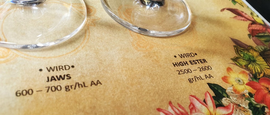 Nous attaquons ensuite les choses (très) sérieuses avec deux rhum sortis de WIRD et d’une puissance aromatique rare. Autant vous dire que je suis plus qu’impatient! Les deux ont été distillés intégralement en Pot Still (dans le Gregg et dans le Hot Pot). Le premier des deux arbore le tout premier « mark » officiel de la distillerie, Jaws. Il titre à 65,6% d’alcool et présente un taux d’esters entre 600 et 700 g/hlpa. Au nez il exhale une magnifique brioche à l’ananas, avec de jolies notes de framboise et un beurré très funky. En bouche il est cohérent, puissant (normal vu le titre alcoolique), sur la brioche à l’ananas là aussi, mais avec un boisé pour équilibrer ça. La vanille est légère, elle accompagne la noix de coco pour un rhum décidément bien vif mais terriblement séduisant!