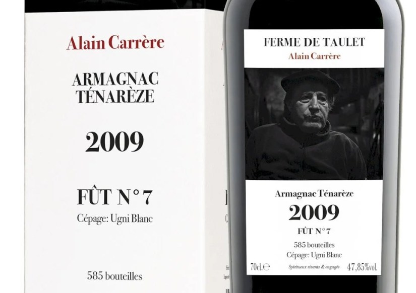 Restons dans le Ténarèze mais changeons de domaine, direction la Ferme de Taulet avec un armagnac distillé en 2009 à base d’Ugni Blanc. 14 ans plus tard, il nous parvient au titre (très) précis de 47,85%. Rayon tarif en revanche on revient sur quelque chose de plus correct avec un prix de 99€ la bouteille.